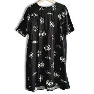 H&M / Tribal Print Crewneck Mini Dress Flowy Lightweight B&W Sz 8 Flawed