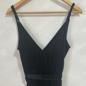 H&M Velour Velvet Jumpsuit in Black, cross wrap top wide leg skinny straps small