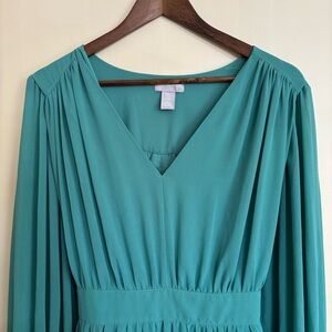 H&M sheer long sleeve dress with a flattering V-neck, tie back and cuffed sleeves. Perfect for holiday party or social outings. Size XL.