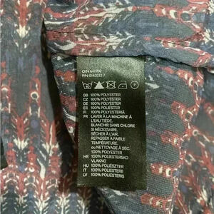 H&M, Vibrant Patterned Semi-Transparent Sleeveless Blouse, Size 12, Navy, Red π