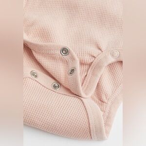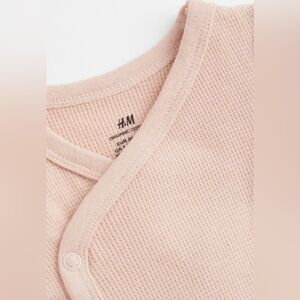 H&M Waffle Knit Wrapover Short Sleeve Bodysuit, Shorts & Hat Set in Blush Pink