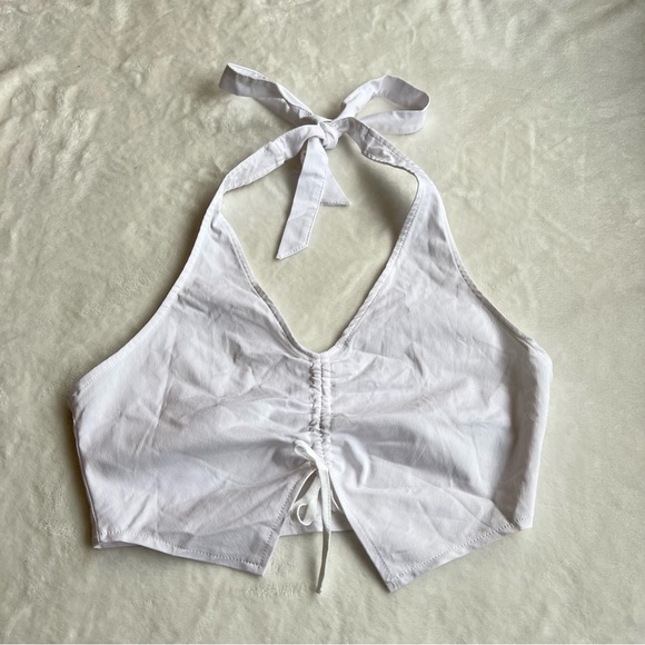H&M White HalterNeck Drawstring Top