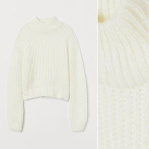 *H&M White Knit Stand-up-collar Sweater