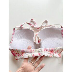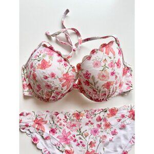 H&M White Pink Floral Scalloped 2pc Halter Bikini Set, Size 36D/10