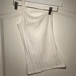 Stylish cream ribbed tank top by H&M. Ideal for layering or standalone wear.