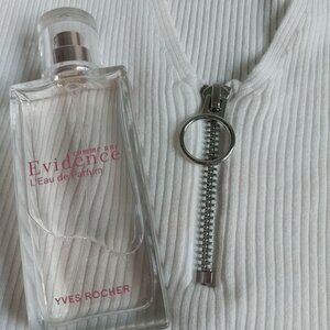 This chic white ribbed top from H&M has been barely worn and is in excellent condition. It features a stylish deep V-neck with a unique zipper detail, adding a touch of edge to its feminine design. The fabric is soft and comfortable, perfect for pairing with jeans or a skirt for a casual yet polished look.🎀🍭🌟
