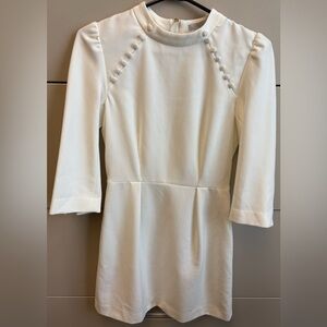 H&M White Sheath Prim British inspired Dress Mock Neck 3/4 Sleeves women's Small