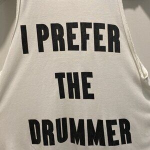Women's fun H&M White Tank Top with "I prefer the drummer'
