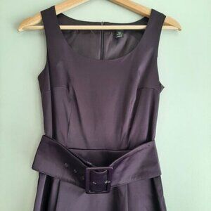 H&M | Wide Belt Defined Waist Sheath Dress Knee Length Purple Sz 4 Flawed