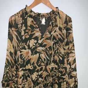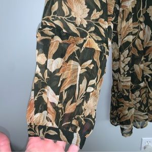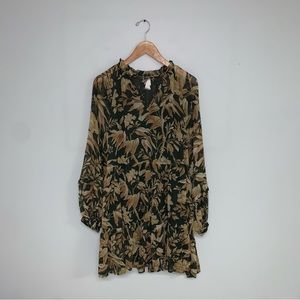 H&M Wide-cut Chiffon Dress Size 6 US Green Beige Floral Long Balloon Sleeves