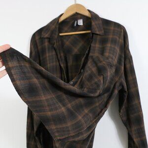 *H&M Women Brown Pure Cotton Oversized Flannel Brown Shirt