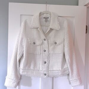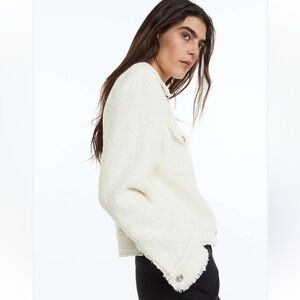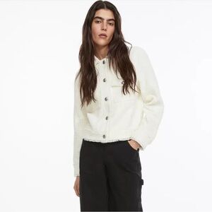 Loose fit with a collar, buttons down the front, gently dropped shoulders and buttoned cuffs. Flap chest pockets with a button. Lined.