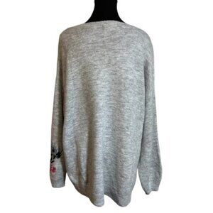 H&M Women Large Floral Embroidered Grey Sweater Cottagecore Boho Soft Wool Blend