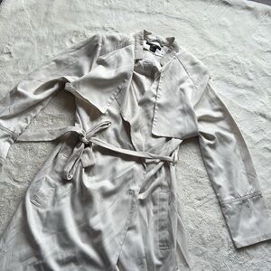 H&M Women’s Beige Trench Coat Long Belted Drape Front Jacket, Lightweight Layer