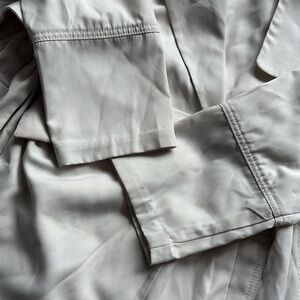 This H&M women’s trench coat is a stylish and versatile outerwear piece, perfect for transitional weather. Designed in a soft light beige tone, it features a chic drape front, open lapels, and a belted waist to cinch for a flattering silhouette. Made from lightweight fabric, this jacket is ideal for layering over your favorite outfits in spring or fall. Long sleeves and a long-length cut offer just the right amount of coverage for an effortlessly polished look.