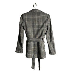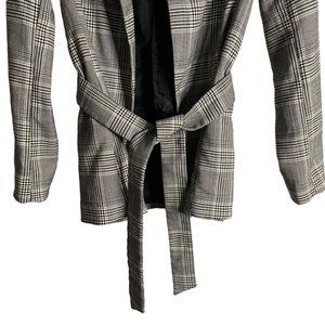 H&M Women's Black and White Plaid Belted Blazer Jacket