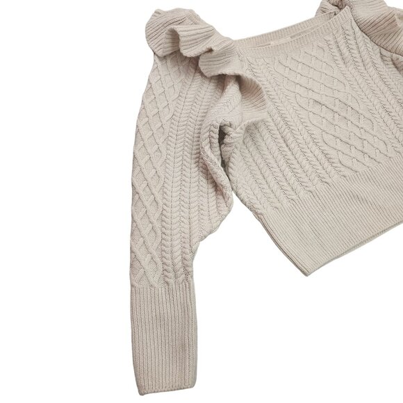 H&M Womens Cable Knit Cropped Sweater With Ruffle Detail Size XL