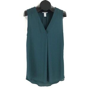 H&M Women's Conscious V-Neck Dark green Chiffon TunicSleeveless Blouse