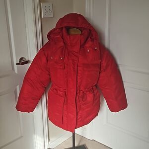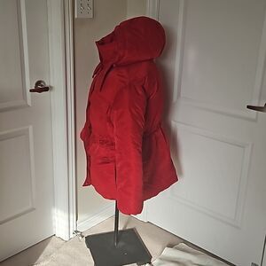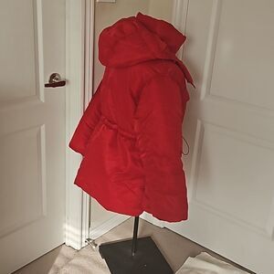 H&M Women's Hoodie Puffy Winter Jacket With Waist Drawstring Medium Red