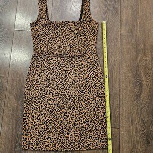 This H&M women’s leopard print sleeveless tank dress in a size small is a must-have for your wardrobe! It's made with 5% spandex stretch so you can count on comfort. The bodycon adds a sexy fit that is sure to turn heads. Perfect for any body shape and for layering in the cooler months!