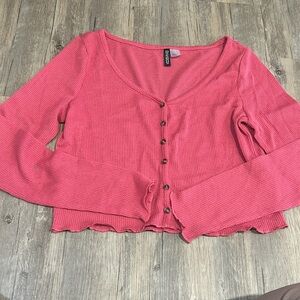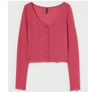H&M Women's Lettuce Trim Long Sleeve Rib Knit Top