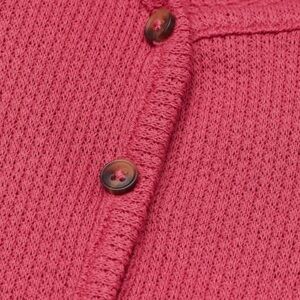 fitted, fine knit shirt with a v-neck, buttons at front, and long sleeves. Overlocked edges at cuffs and hem