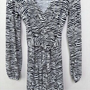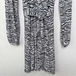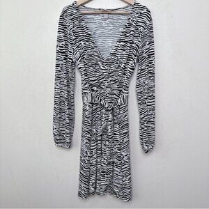 H&M Womens Medium Knee Length Zebra Print Belted Wrap Dress