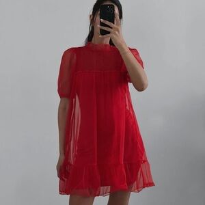 H&M Women’s Mesh Dress Red M 20”