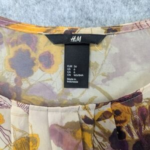 Elegant floral print women's top by H&M featuring a blend of cream and purple hues. Perfect for any occasion.