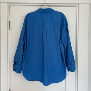 Bright blue shirt with button closure. Ideal for everyday wear. Stylish and comfortable.
