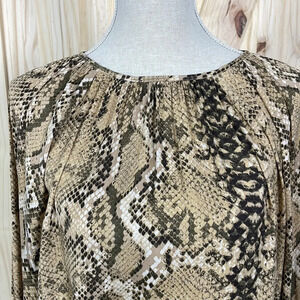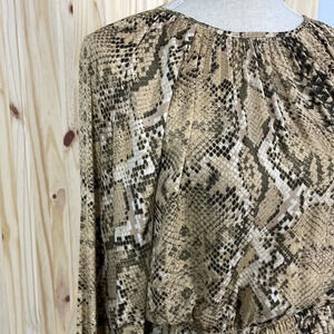 H&M Women’s Popover Snakeskin Print Blouse Top Size 4 Brown Tan EUC