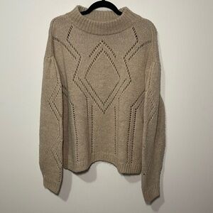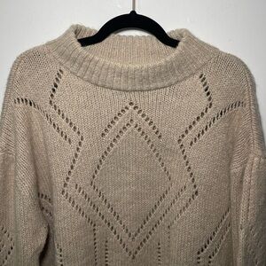 H&M Women’s Tan eyelet crew neck alpaca wool blend sweater in size S