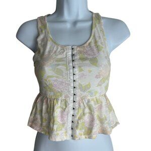 H&M Women’s Tank Top Pastel Floral print Cropped Ruffle hem Y2K early 2000s