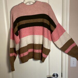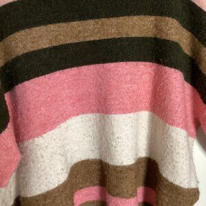 H&M Women's Wool Blend Sweater Pink Brown Color Block Loose Fit Baggy Size L