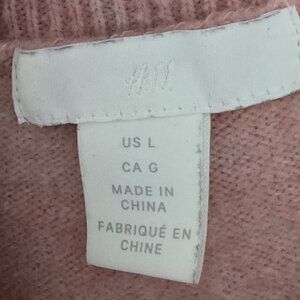 H&M Women's Wool Blend Sweater Pink Brown Color Block Oversize Loose Fit Baggy Size L Soft Comfy