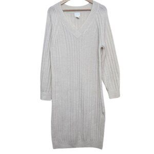 H&M Womens Xsmall Vneck Ribbed Wool Ivory Sweater Dress