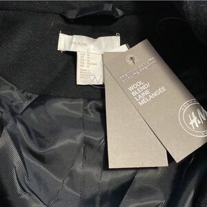 H&M Wool-blend Jacket pea coat double breasted black Sz 14 woven made in Italy