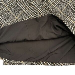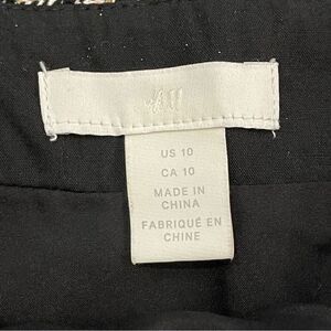 H&M Wrap Front Skirt Black Houndstooth Pattern Women's 10. Short skirt in thick, woven fabric with wool content. High waist and concealed side zip. Gentle A-line cut with mock wrapover and decorative gold button at front. Lined. Very good used condition. Reviews show that it runs small, so please see photos for approximate measurements.