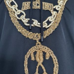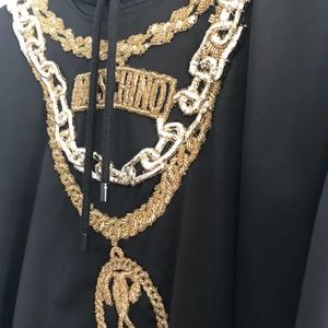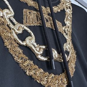 BLACK SWEATSHIRT HOODIE SWEATER WITH GOLD CHAIN
