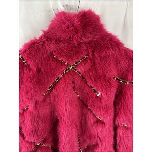 H&M X Moschino Jeremy Scott Pink Faux Fur Coat w/ Chains Womens Size XS