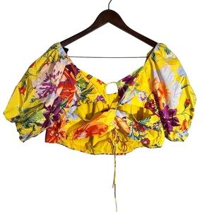 H&M Yellow Floral Cropped Top Puff Sleeves Criss Cross Back Size XXL NWT