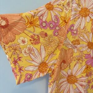H&M Yellow Floral Linen-Blend Short Sleeve Shirt | Size M