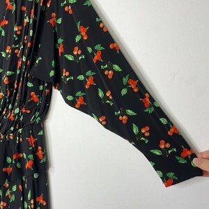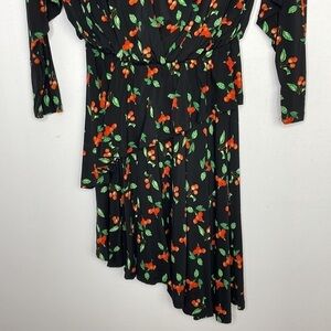 H&M asymmetric ruffle cherry print black dress