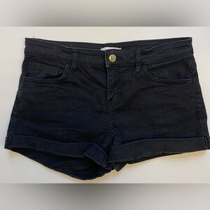 H&M black mini shorts 5 pocket zip fly cotton blend washed denim women’s size 4