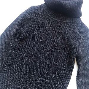 H&M black/silver knit turtle neck sweater EUC 6-7Y