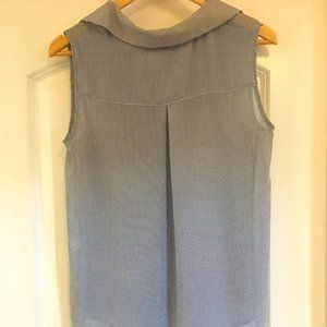 H&M sheer high-low blouse with collar. Blue and white vertical striped. Gently worn, good condition.