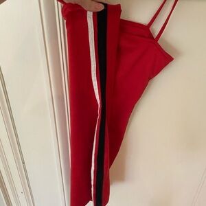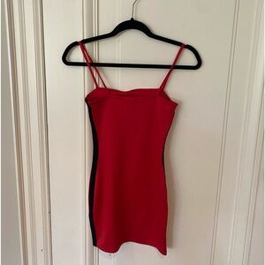 H&M bodycon dress - red with white and black stripes down side