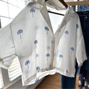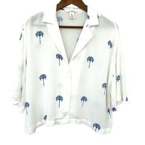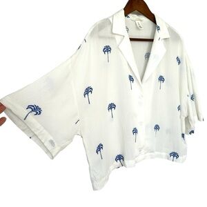 H&M button down shirt, cropped & oversized, with dolman cut 3/4 sleeves.