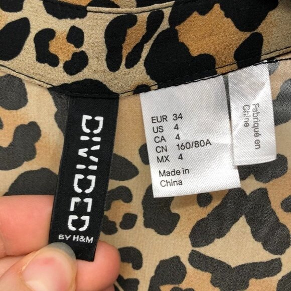 H&M cheetah leopard print sheer button down blouse size 4 loose fit