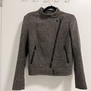 Stylish cropped jacket that can be worn as a waterfall or zipped up to give more warmth whilst looking unique!